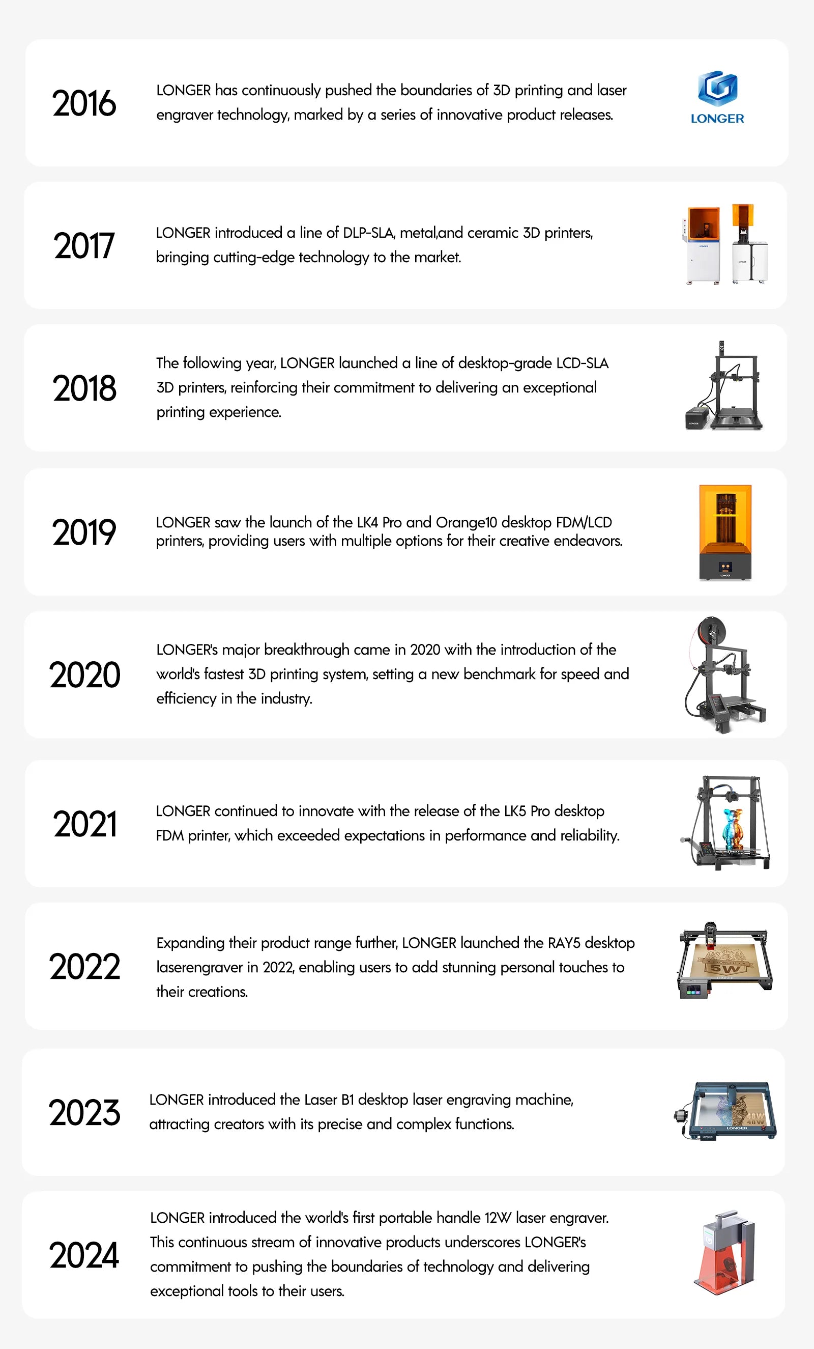 LONGER's journey reflects strategic growth, quality, and innovation, aiming to push technology boundaries and enhance customer satisfaction in 3D printing and laser engraving.
