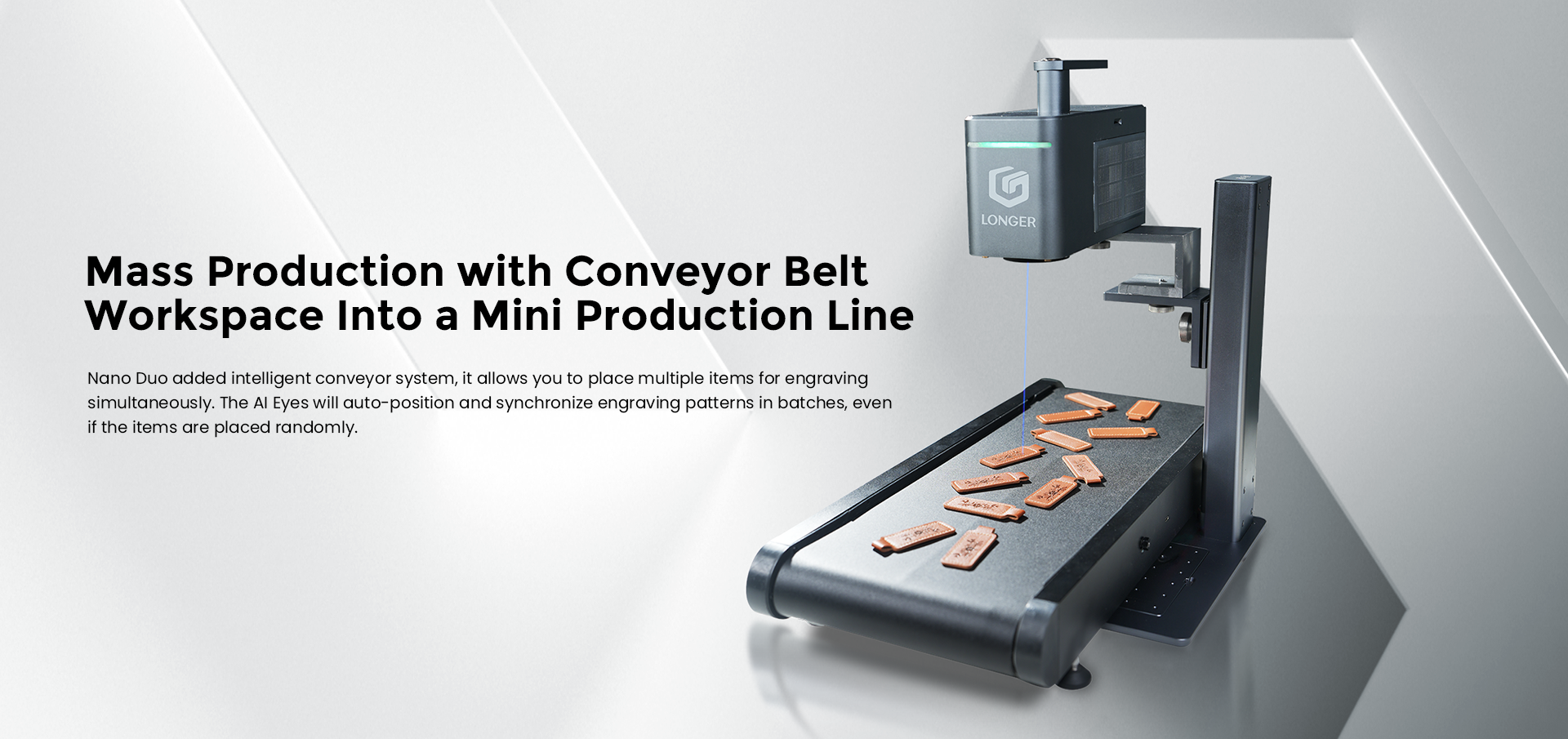 The Nano Duo capable of engraving at up to 10000 mm/s, delivering precise and rapid results that rival industrial-grade machines. Nano Duo minimizes wait times, whether you're working on intricate designs or large-scale projects.
