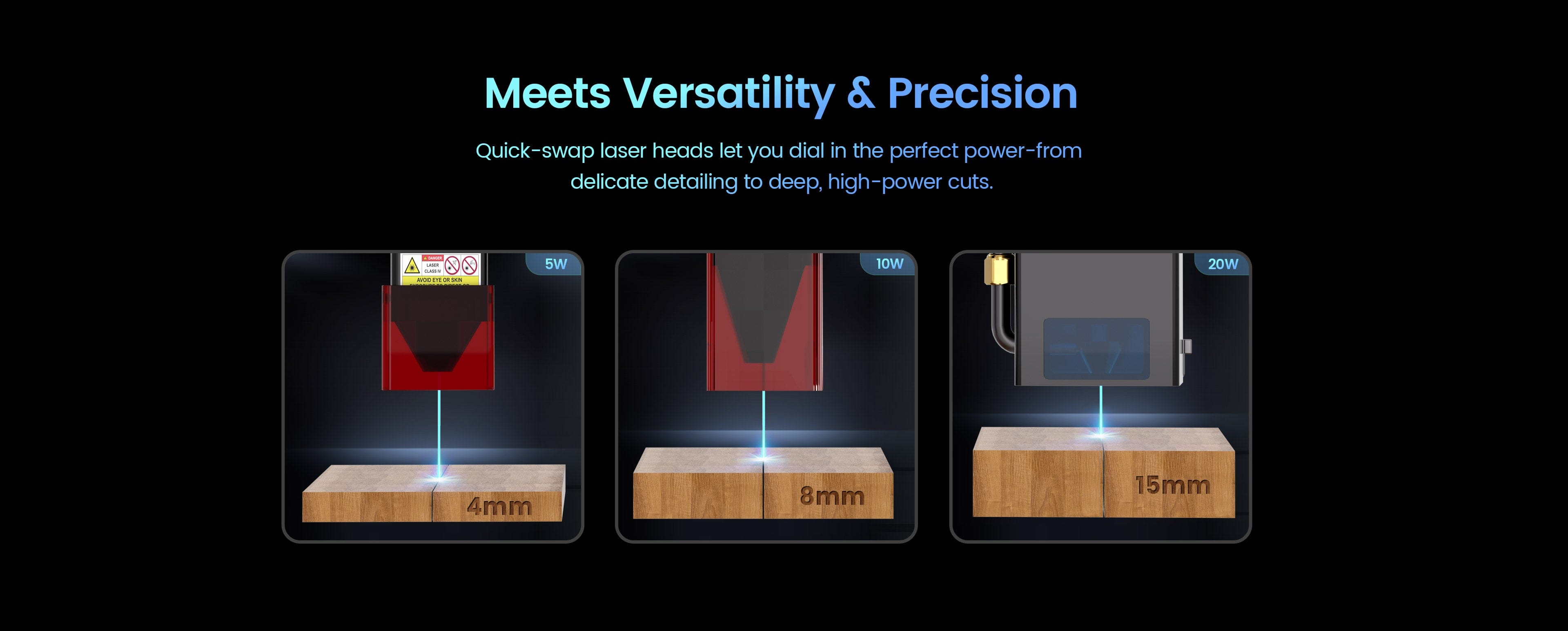 • Exceptional Versatility: Interchangeable laser modules (30W/20W/10W/5W/2W IR) allow you to work with a wide variety of materials.