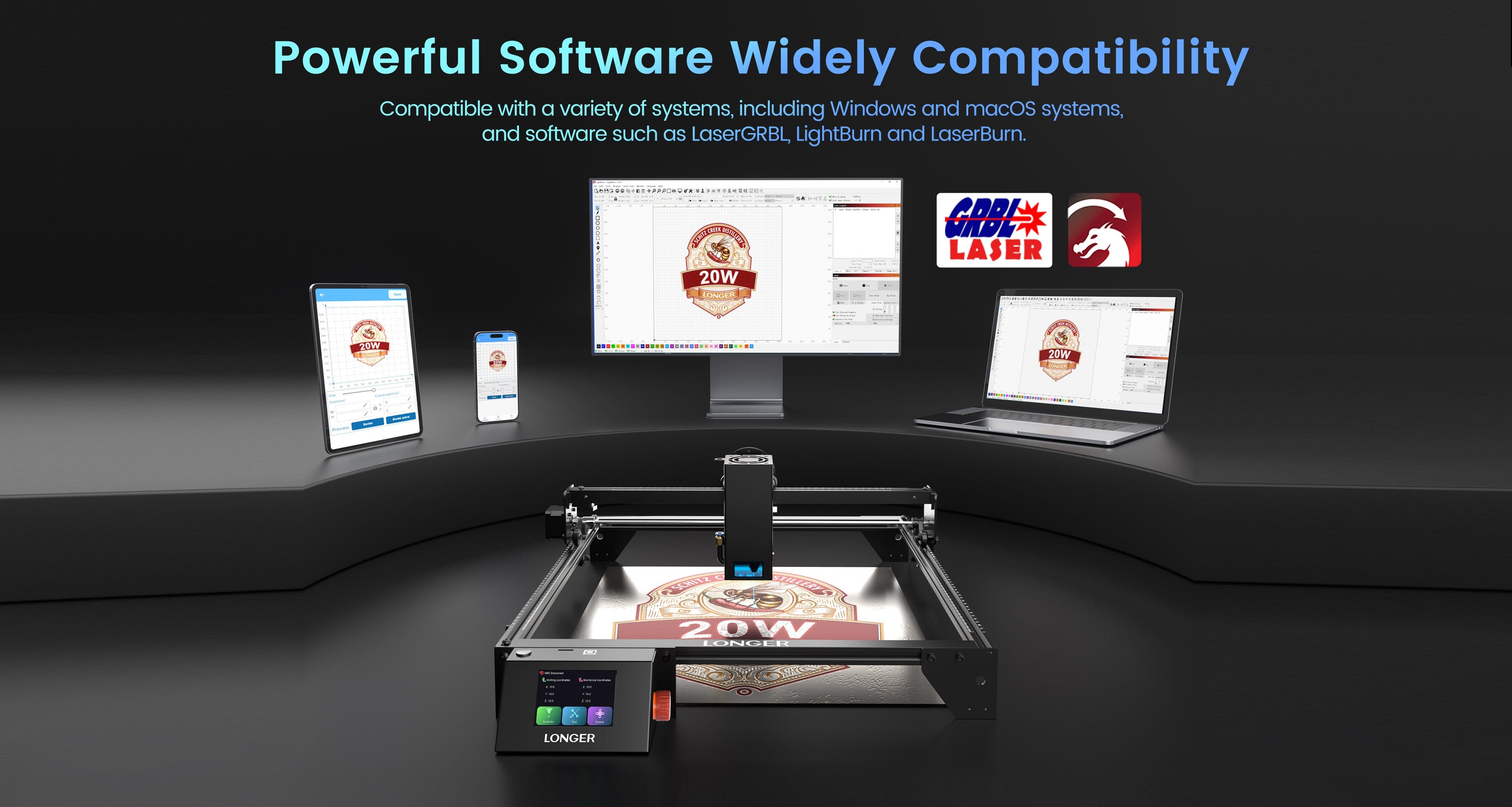 • User-Friendly App Control: Compatible with Lightburn, LaserGRBL, and LaserBurn for seamless operation.